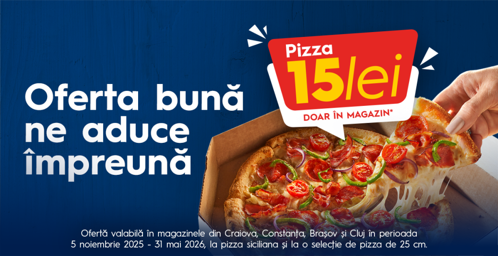 Vino în magazin în perioada 5 noiembrie 2025 – 31 martie 2026 și ai pizza la 15 lei!