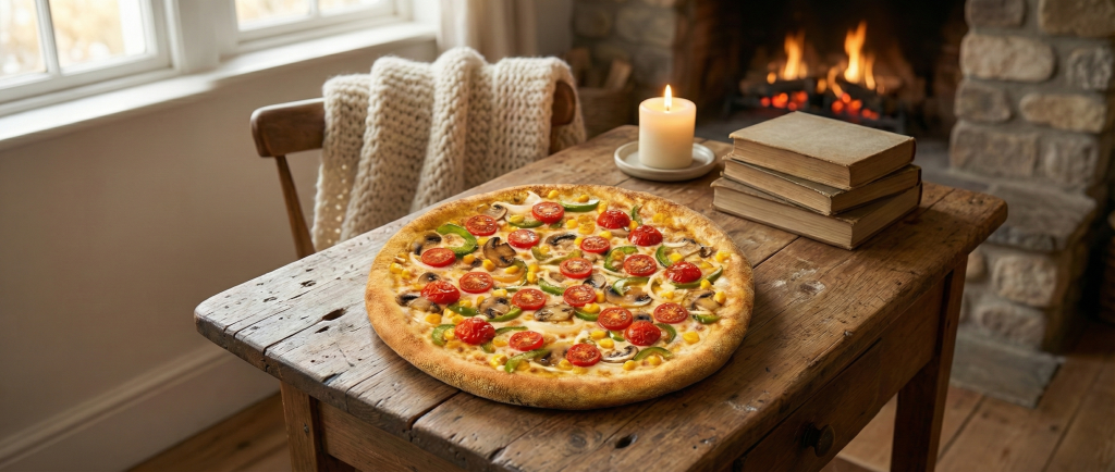- Mănâncă devreme și savurează încet – nu lăsa pizza pentru miezul nopții; mesele târzii cresc riscul de reflux. Savurează porții moderate, mestecă încet și bucură‑te de aromă.